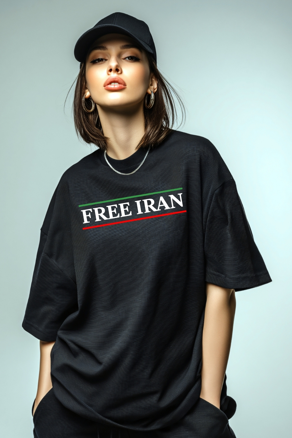 This Free Iran protest art digital design is inspired by modern Iranian identity, freedom movements, and contemporary protest art. The bold typography combined with the colors inspired by the Iranian flag creates a powerful visual message that resonates with those searching for expressive Iranian art and freedom-related designs.